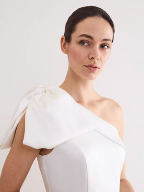 Josephine One Shoulder Bow Midi Wedding Dress, Ivory
