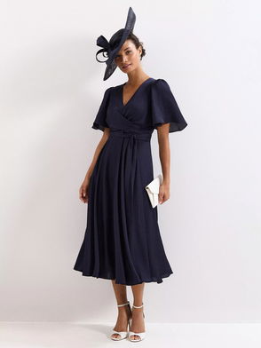 Petite Abbie Wrap Midi Dress, Navy