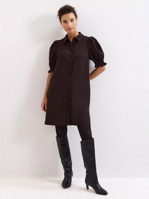 Candice Scallop Detail Shirt Dress, Brown