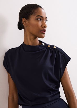 Novie Satin Shirt Containing LENZING™ ECOVERO™ Viscose, Blue