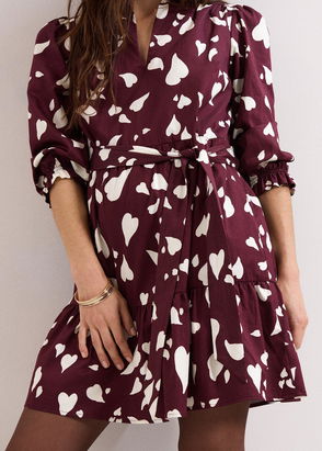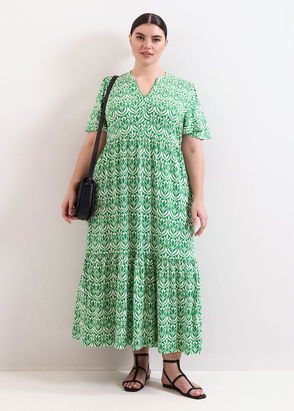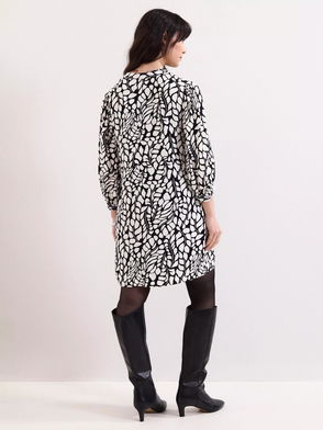 Milicia Leaf Print Tunic Dress, Black/Ivory
