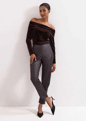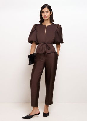 Ivy Brown Satin Cigarette Trousers