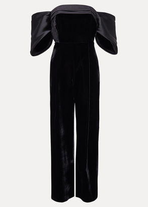 Angelica Black Bardot Velvet Jumpsuit
