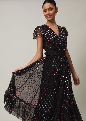 Loren Sequin Spot Tulle Maxi Dress