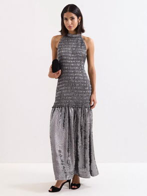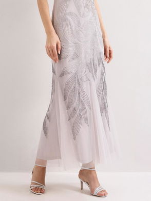 Reina Beaded Maxi Dress, Silver