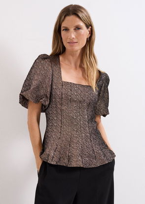 Kassie Jacquard Peplum Top, Gold