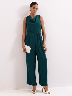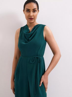 Petite Monique Cowl Neck Jumpsuit, Teal