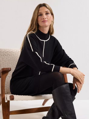 Hallie Contrast Trim Jumper Dress, Black/Ivory