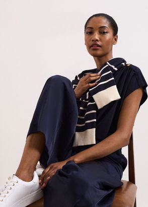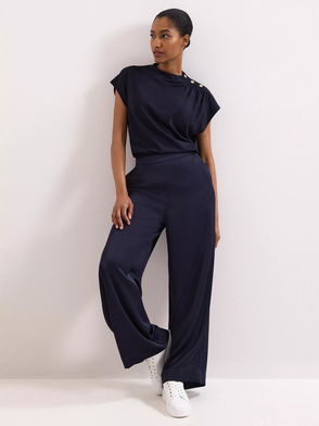 Petite Orwen Embellished Neck Jumpsuit, Navy