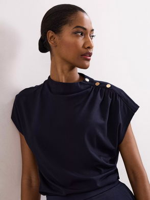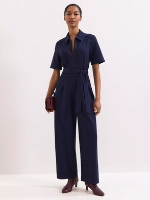 Petite Orwen Embellished Neck Jumpsuit, Navy