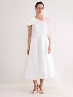 Josephine One Shoulder Bow Midi Wedding Dress, Ivory