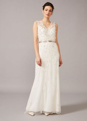 Annie Floral Embellished Midi Wedding Dress, Ivory