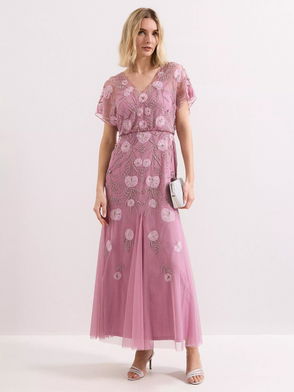 Georgiana Floral Pleated Midi Dress, Pale Pink