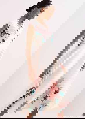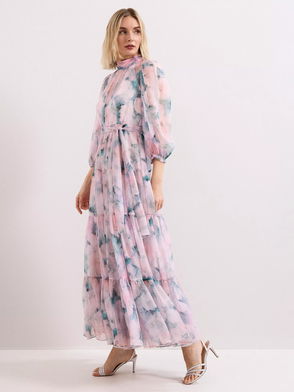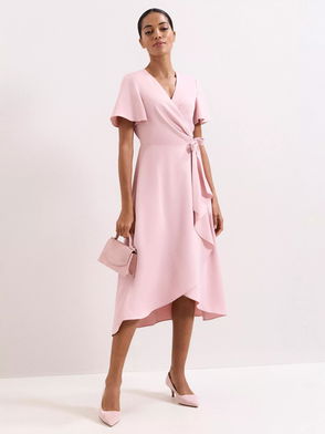 Georgiana Floral Pleated Midi Dress, Pale Pink