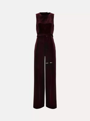 Petite Marta Velvet Sleeveless Jumpsuit, Burgundy