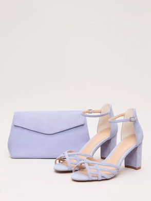 Strappy Block Heel Suede Sandals, Pale Blue