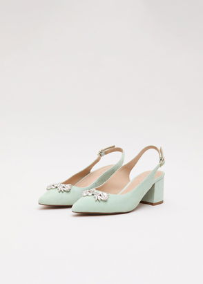 Leather Block Heel Slingback Court Shoes, Silver