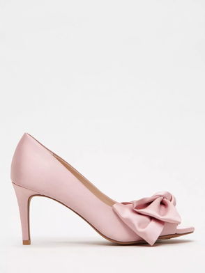 Bow Satin Court Shoes, Pale Pink