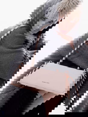Nora Pink Corduroy Zip Front Crossbody Bag