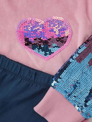 Kids' Sequin Heart Velour Hoodie & Leggings Set, Pink
