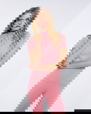 Womens 99% Bio-Based Zipped Long Sleeve Top—Dewy Rose