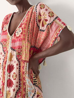 Long Sleeved Tie Waist Midi Dress, Rose Print