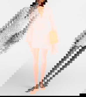 Cameo Floral Jacquard Bow Cape Sleeve Mini Dress In Pink
