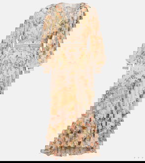 Wanderlust Gathered Printed Linen Midi Dress