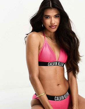 Intense Power Rib Triangle Bikini Top In Bright Pink