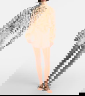 Beaded Linen-Silk Woven Top