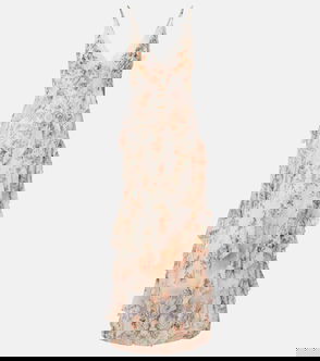 Embellished Floral Silk Satin Maxi Dress
