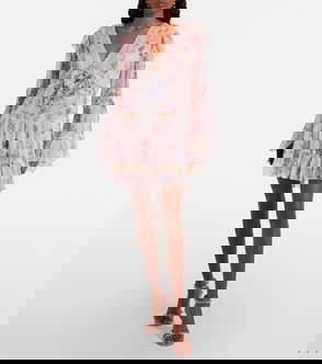 Rebellion Bead-embellished Ruffled Printed Silk Mini Dress