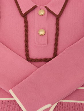 3-9 Yrs Stripe-Detail Collared Knit Dress In Dark Pink