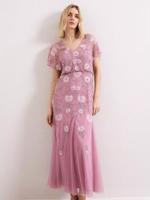 Petite Simara Plisse Maxi Dress, Pale Pink
