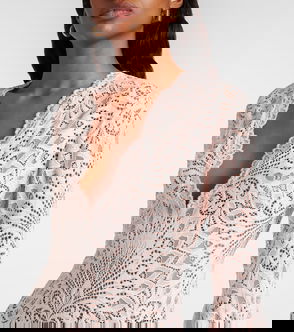 Cameo Floral Jacquard Bow Cape Sleeve Mini Dress In Pink