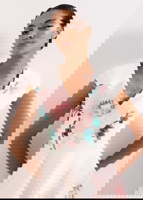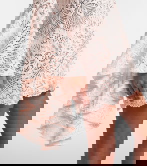 Floral-Lace Cap-Sleeves Woven Mini Dress
