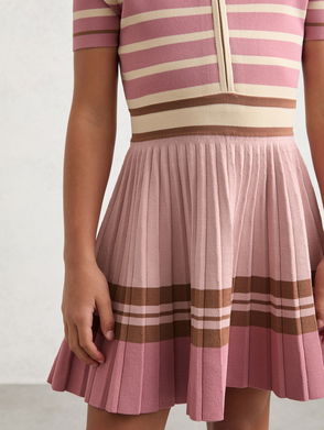 13-14 Yrs Cotton Collared Stripe Knit Dress In Pink