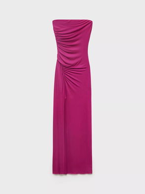 Lia Strapless Ruched Maxi Dress, Bright Pink