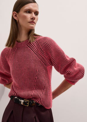 Merino Fashioned Rib Jumper Rhubarb Pink/Bordeaux