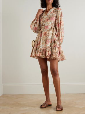 Gathered Floral Silk Minidress