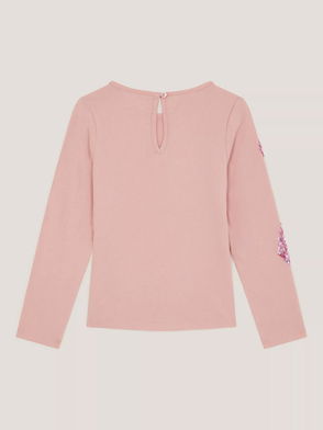 Kids' Sequin Bow Long Sleeve Top, Pink