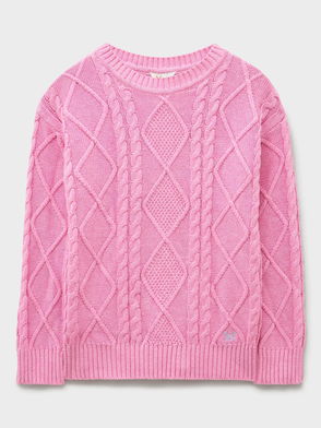 Kids' Plaited Cable Knit Jumper, Pastel Pink