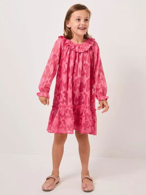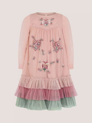 Kids' Embellished Heart Dress Long Sleeve Dress, Pink
