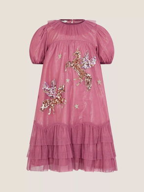 Kids' Short Sleeved Sequin Unicorn Christmas Dress, Pink