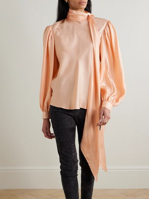 Tie-neck Draped Gathered Silk Satin-twill Blouse