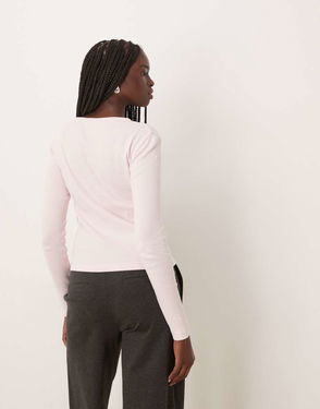 Terry Towel V Neck Long Sleeves Polo Shirt In Sandy Pink