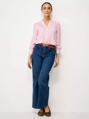 Pleated Embroidered Long-Sleeve Blouse In Pale Pink