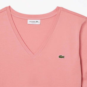 Terry Towel V Neck Long Sleeves Polo Shirt In Sandy Pink