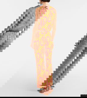 Jacquard-trimmed Stretch-silk Satin Wide-leg Pants