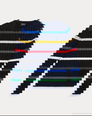 Striped Cable-Knit Cotton Jumper